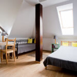 | Nr 7 Studio 3 pokoje dwuosobowe z osobnymi wejściami, wspólnym korytarzem i wspólną łazienką7A 7B 7C | 1x podwójne 1x podwójne 2x łóżko pojedyncze | 1 osoba 1 osoba 2 osoby | 2 osoby 2 osoby 2 osoby |