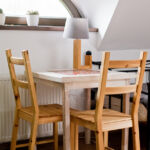 - W każdym pokoju są drewniane łóżka, stolik, krzesła i pojemna szafa