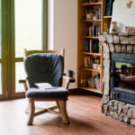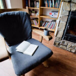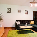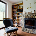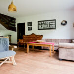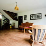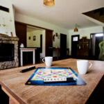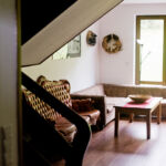 - Na parterze znajduje się salon z kominkiem, biblioteczką i małym aneksem kuchennym (lodówka, czajnik elektryczny)