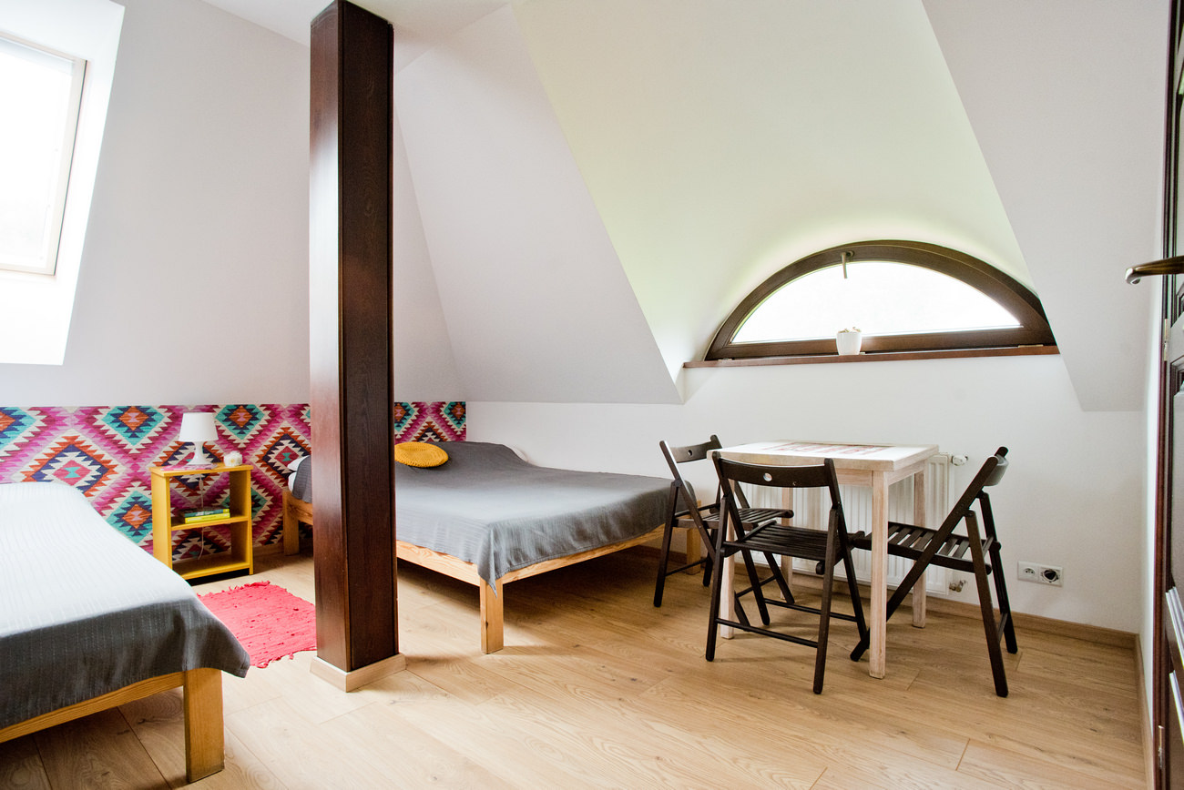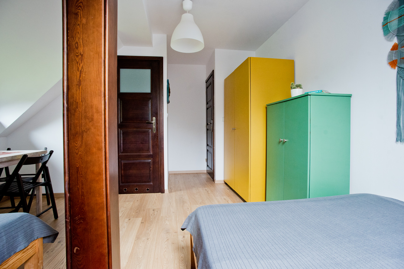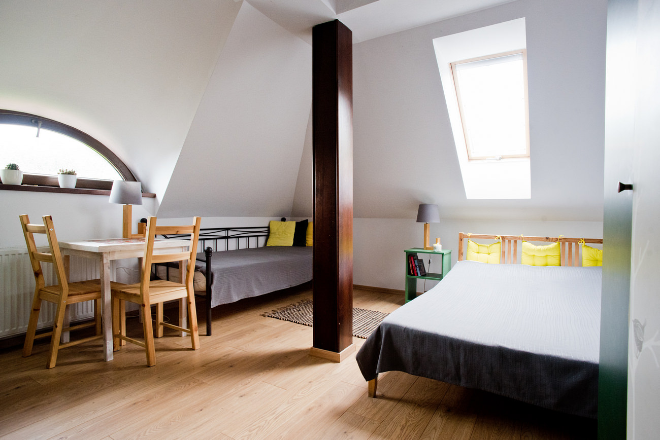 | Nr 7 Studio 3 pokoje dwuosobowe z osobnymi wejściami, wspólnym korytarzem i wspólną łazienką7A 7B 7C | 1x podwójne 1x podwójne 2x łóżko pojedyncze | 1 osoba 1 osoba 2 osoby | 2 osoby 2 osoby 2 osoby |