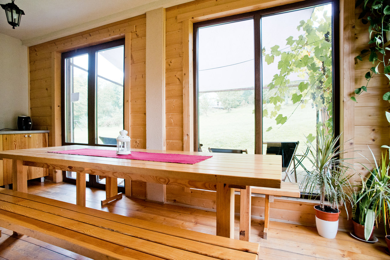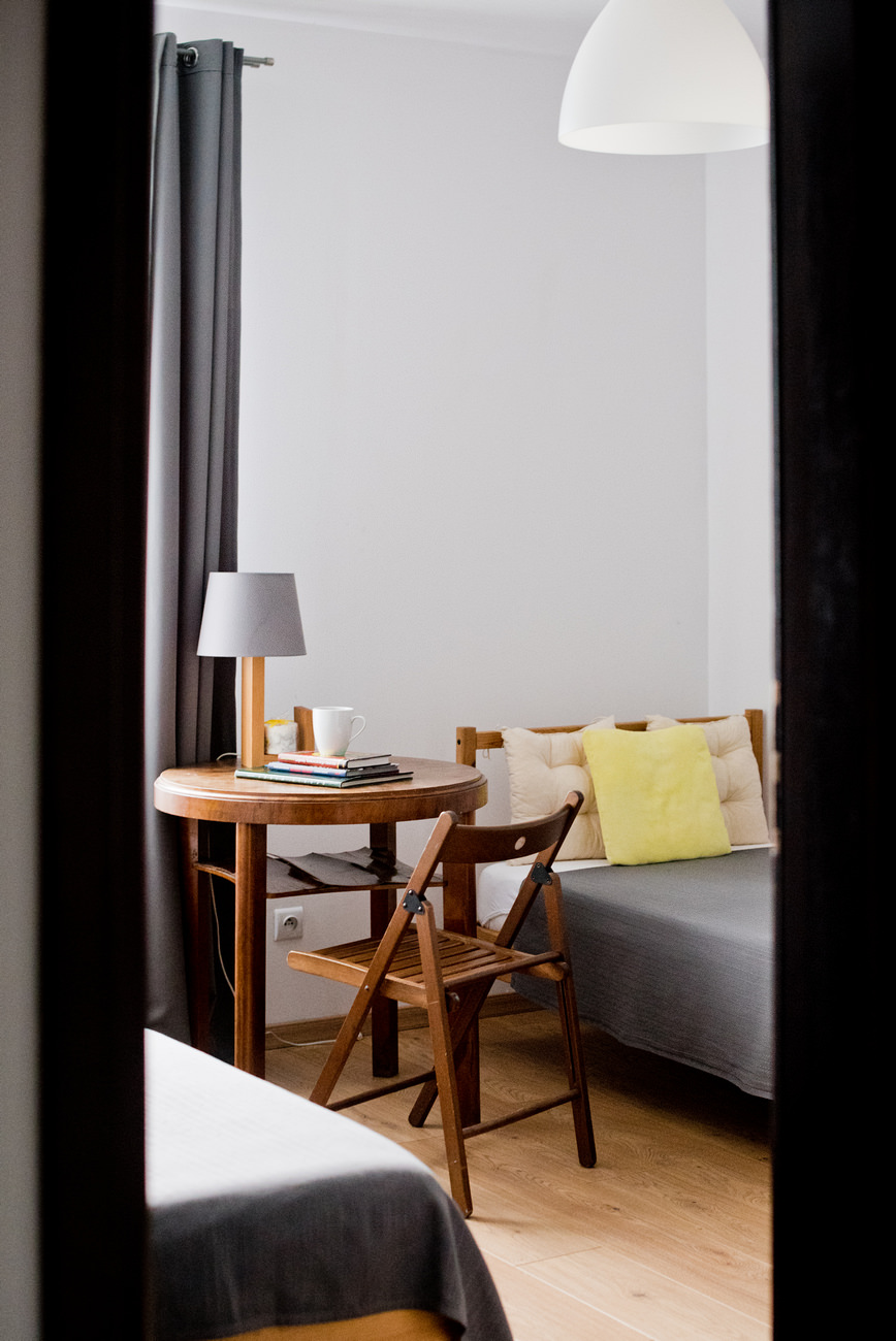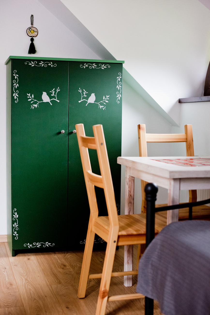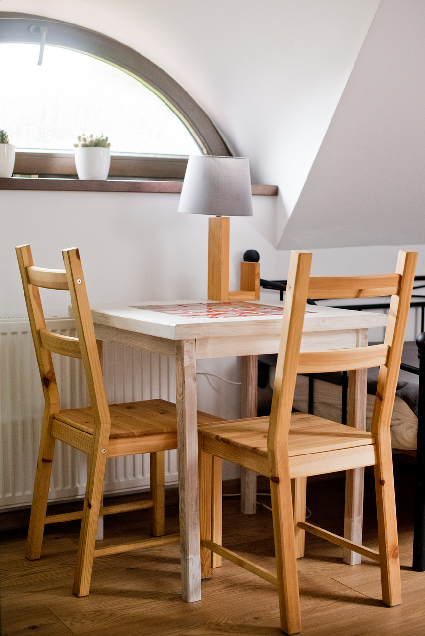 - W każdym pokoju są drewniane łóżka, stolik, krzesła i pojemna szafa