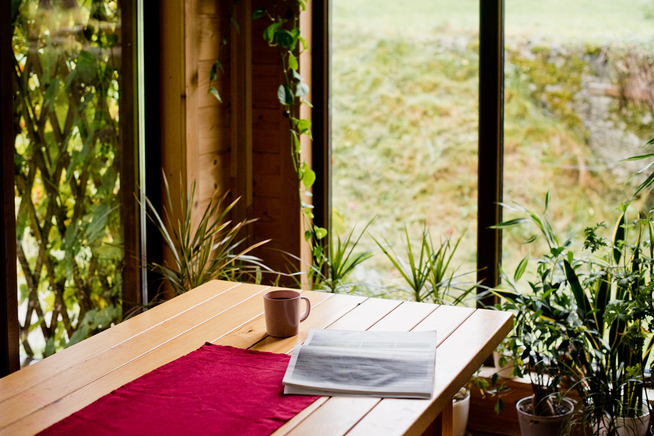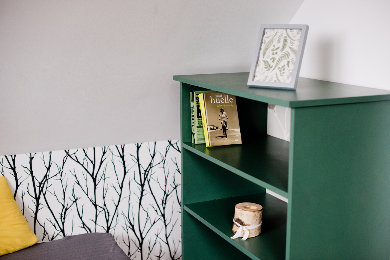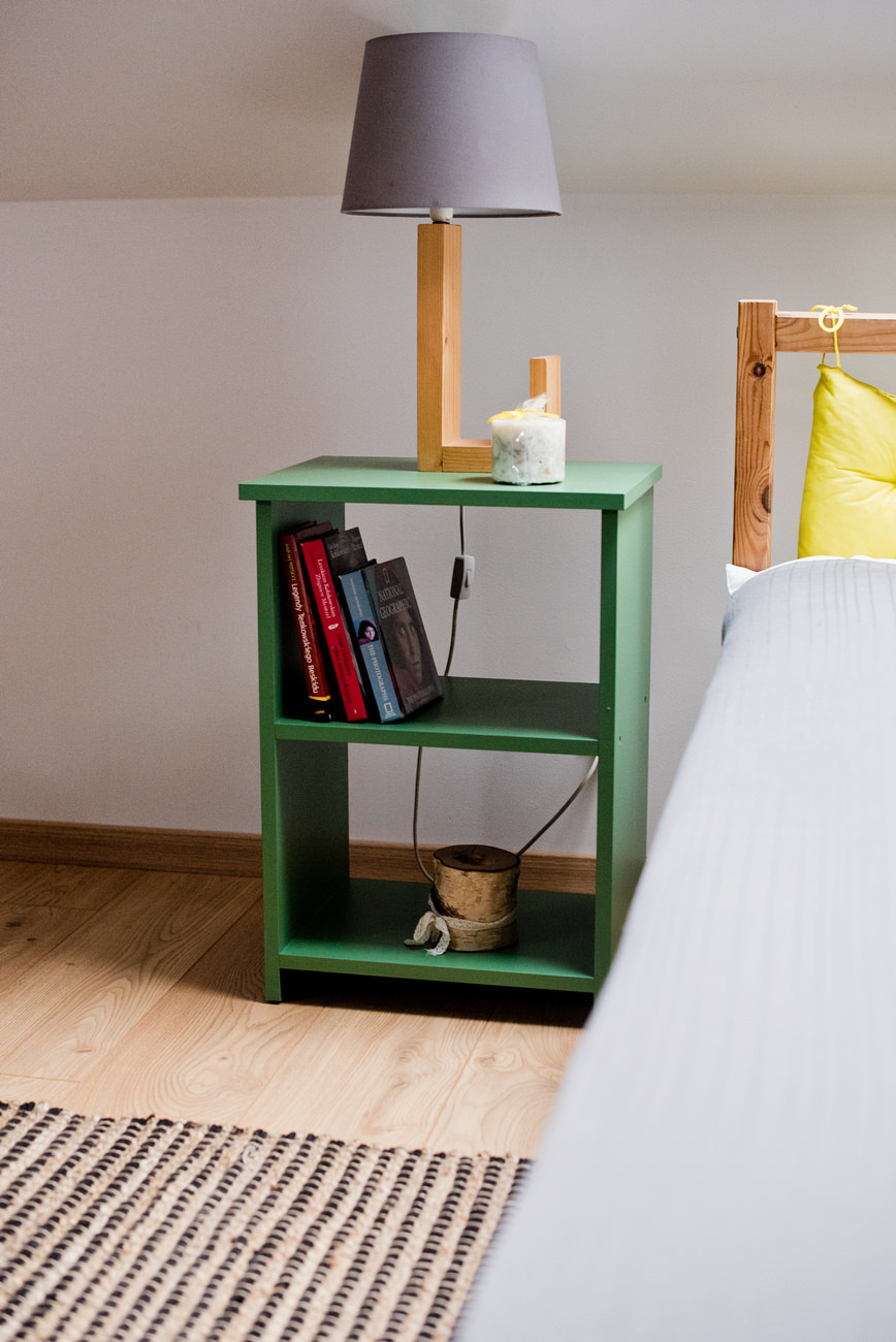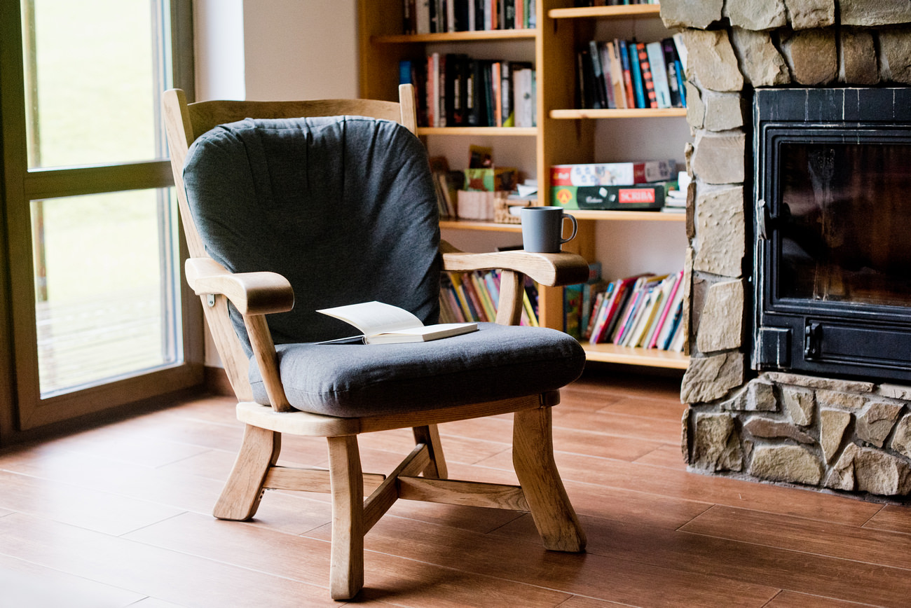 - Na parterze znajduje się salon z kominkiem, biblioteczką i małym aneksem kuchennym (lodówka, czajnik elektryczny)