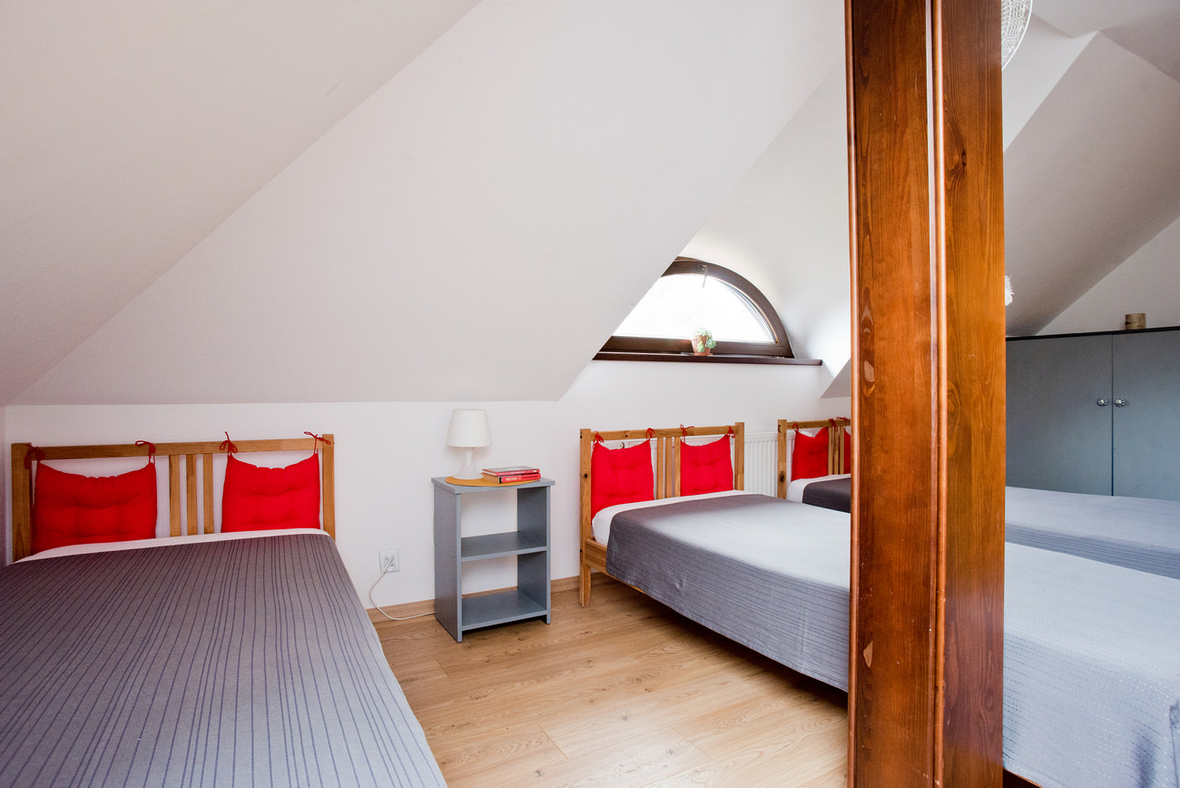 | Nr 1 pokój z łazienką | 1x łóżko podwójne 2x łóżko pojedyncze | 3 osoby | 4 osoby |