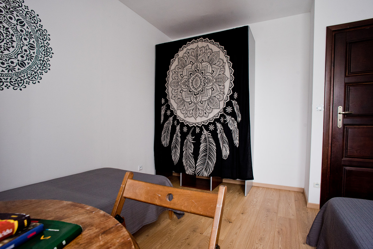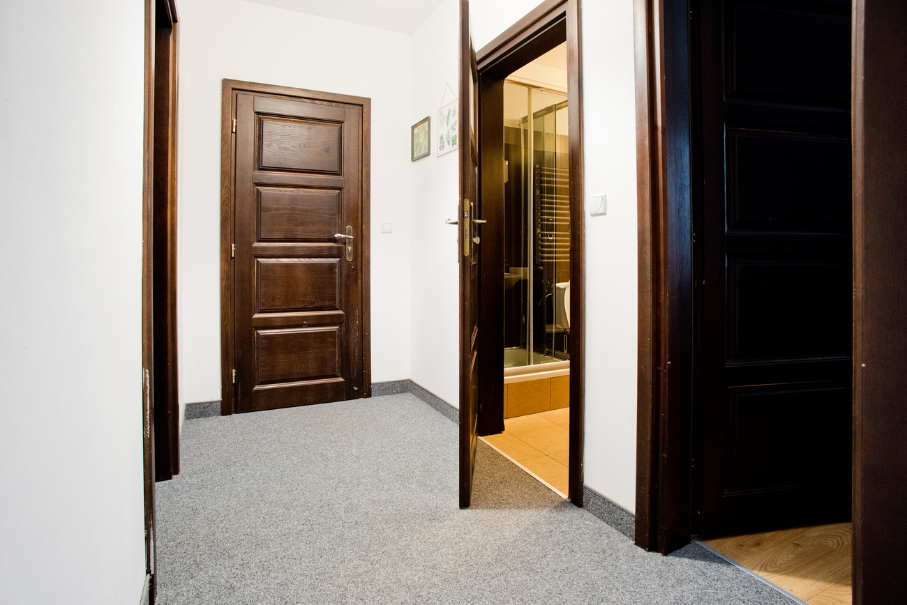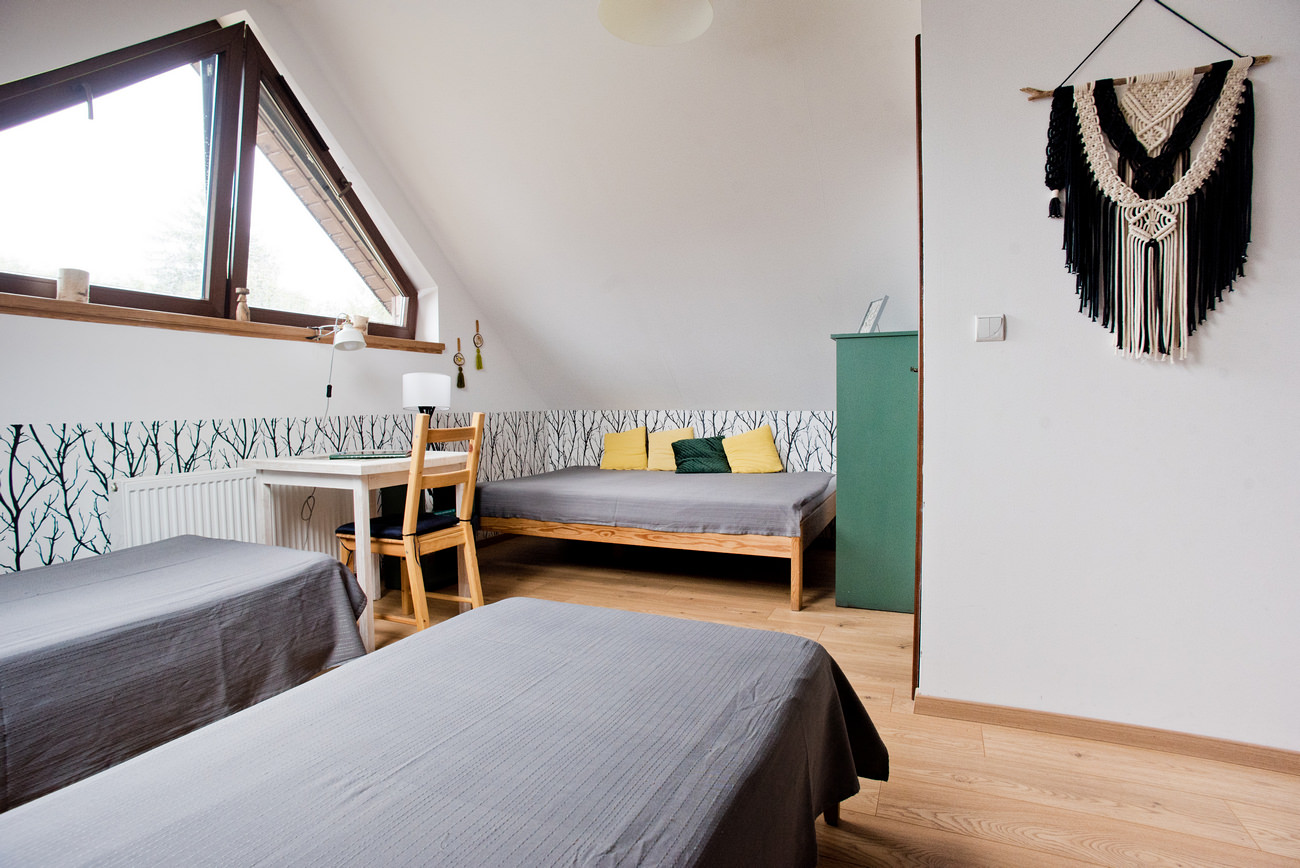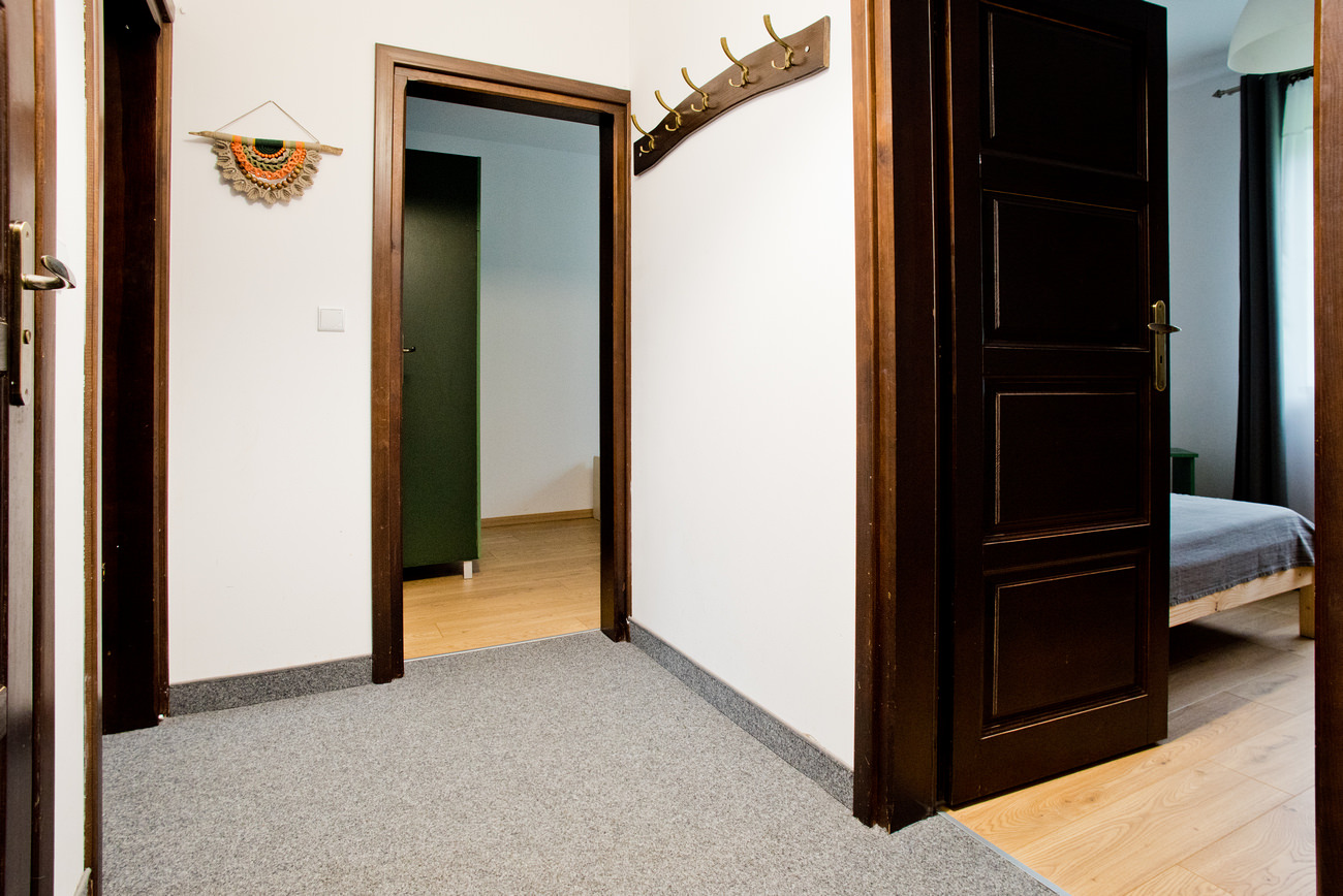 - 3 pokoje dwuosobowe z osobnymi wejściami, wspólnym korytarzem i wspólną łazienką z wanną